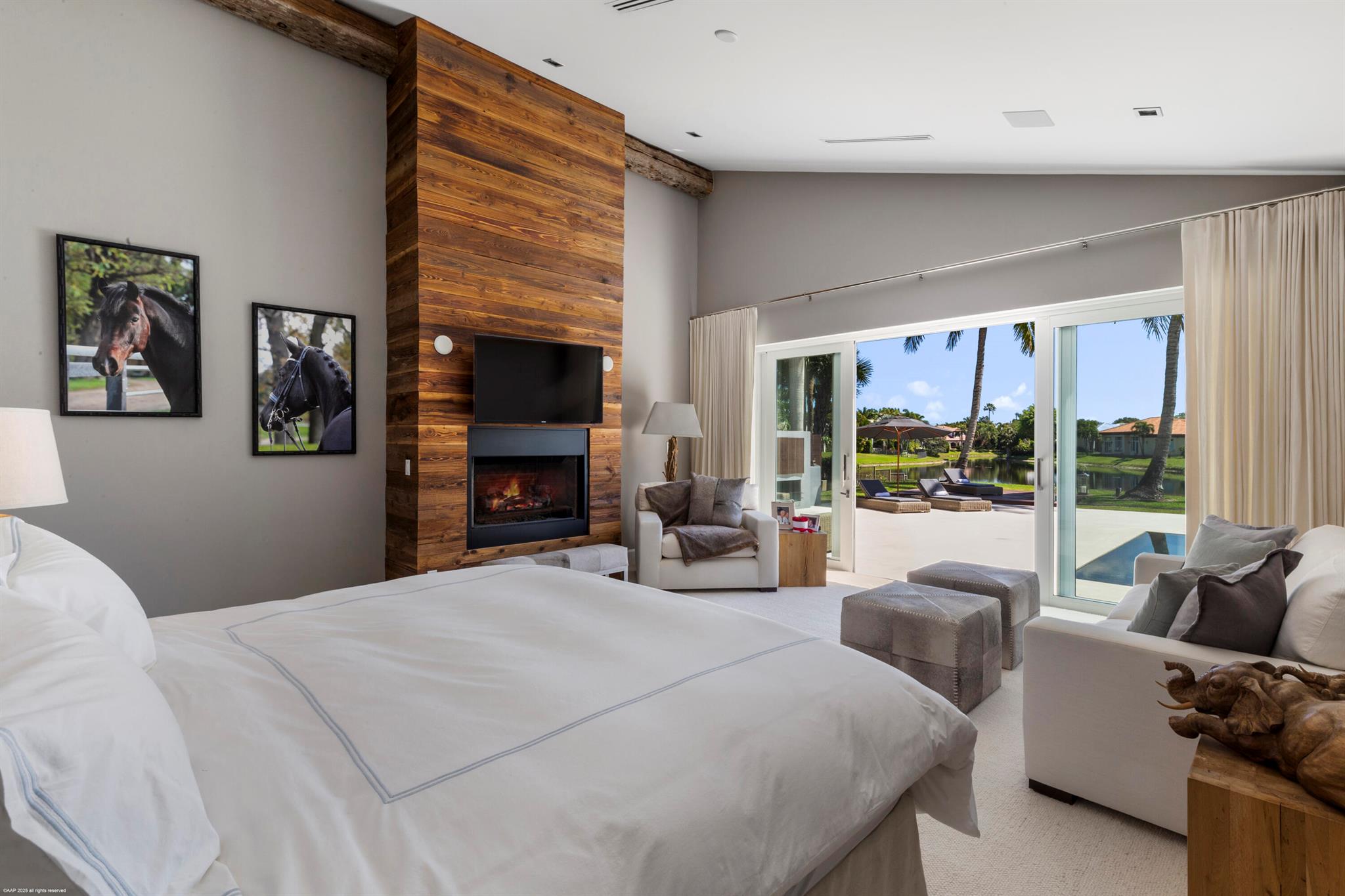 Reduced $330k! Stunningly remodeled lakefront home w/ expansive water views in Palm Beach Polo. The home boasts wood floors throughout, center-island kitchen with high-end appliances, and 300-year old Australian wood beams which accent the volume ceilings. Every bedroom has an in-suite bathroom & the den/office also has a full bathroom & closet which could be a 5th bedroom suite. The luxurious primary suite features water views, gas fireplace, dressing room, breakfast bar, spa like bathroom and outdoor showering courtyard. The expansive pool & patio area is perfect for entertaining with lounging areas, gas fireplace, BBQ & dining spaces. The garage has a mini-split air-conditioner & a second set of washers & dryers. If you're looking for that move-in ready home, this is the one!